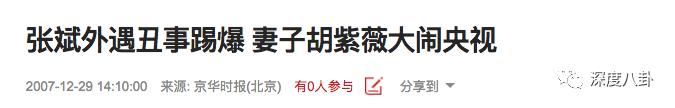 这里歪个楼。9年前也曾发生过类似的事情。央视主持胡紫微,丈夫张斌也是央视主持,2007年12月28日,在央视体育频道改名发布会上,胡紫微突然冲上台去哭诉,爆出张斌和其他女人的不正常关系,被称为“大奶保卫战”。