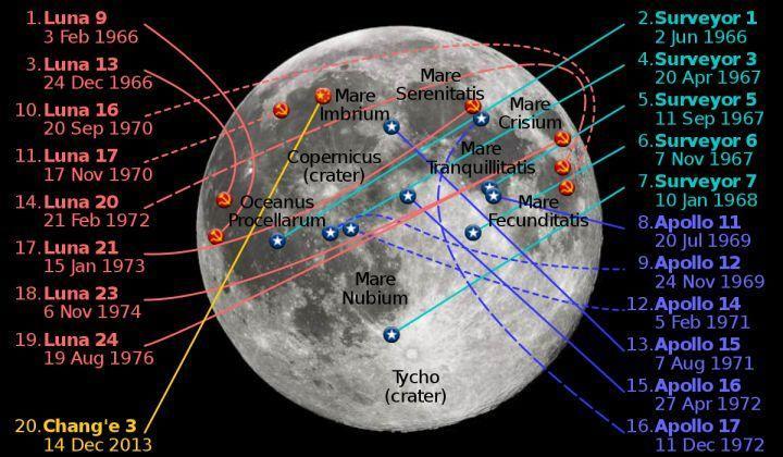 到嫦娥三号,人类已经在月球正面有过20个着陆器,然而背面为0(图自:Wikipedia)