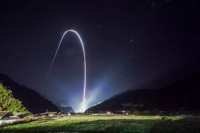 长征三号乙火箭发射嫦娥四号时美丽的延时摄影(图自:吕炳宏)
