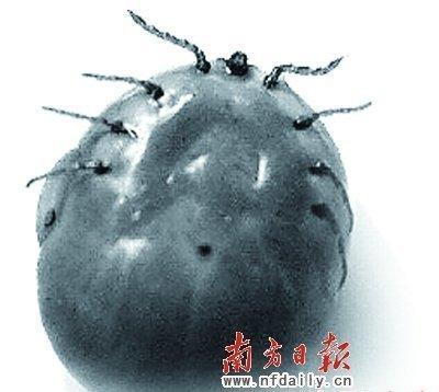 蜱(pí)也叫壁虱,俗称草扒子、草别子、牛虱、草蜱虫。蛰伏在浅山丘陵的草丛、植物上,或寄宿于牲畜等动物皮毛间。不吸血时,小的才干瘪绿豆般大小,也有极细如米粒的;吸饱血液后,有饱满的黄豆大小,大的可达指甲盖大。蜱虫叮咬的无形体病属于传染病,人对此病普遍易感,与危重患者有密切接触、直接接触病人血液等体液的医务人员或其陪护者,如不注意防护,也可能感染。