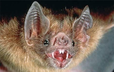 吸血蝠是名副其实的以血为食的类群,也是哺乳动物中特有的吸血种类。分布在美洲中部和南部,体型小,最大的体重不超过30-40克。头骨和牙齿已高度特化,颊齿在数量和大小上都减小,是最特化的种类。上门齿特大,上犬齿成刀状,均有异常锐利的“刀口”。臼齿小,显然无机能,吸血蝠的拇指特长而强,后肢亦强大,能在地上迅速跑动,甚至能短距离跳跃。飞行力强。一只34克的吸血蝠,每晚大概吸血18克。