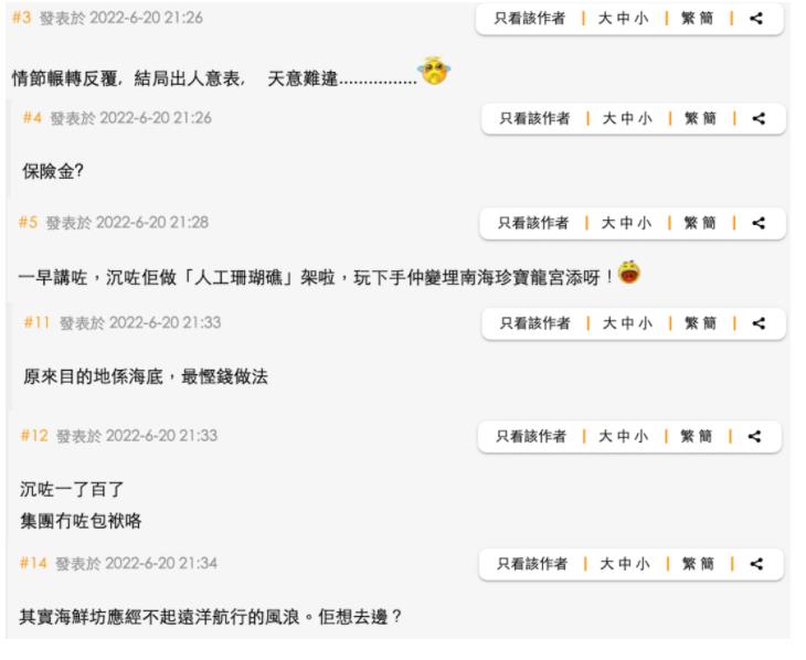 还有网友翻出1999年珍宝海鲜舫姊妹船,同属珍宝王国“海角皇宫”的出海照片,当中显示该船是利用半潜船拖运,一路安全被运送到菲律宾马尼拉港。又于两年后转赠青岛市政府,两次长途海上转运都能安然无恙,而且还能继续营业,而这次拖珍宝海鲜舫则用的不是半潜船,而是普通拖船。 网友质疑当年运船技术已非常先进,而现在放着安全的方式不用,更似是强行将海鲜舫拖出公海,只是为“扔垃圾”。表示“有太多的疑点”,“怀疑是早有剧本的谋杀案”。
