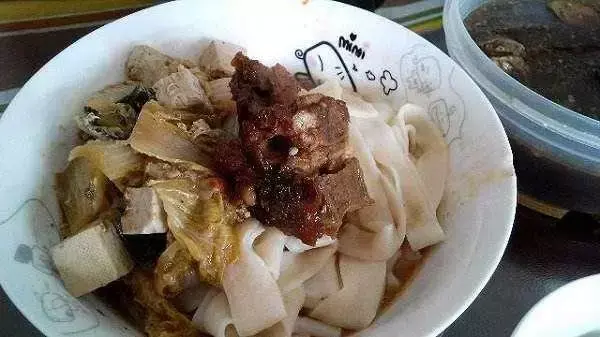 饸饹(读音héle),也叫河漏,是将豌豆面莜麦面、荞麦面或其他杂豆面和软,用饸饹床子(一种木制或铁制的有许多圆眼的工具),把面通过圆眼压出来,形成小圆条。