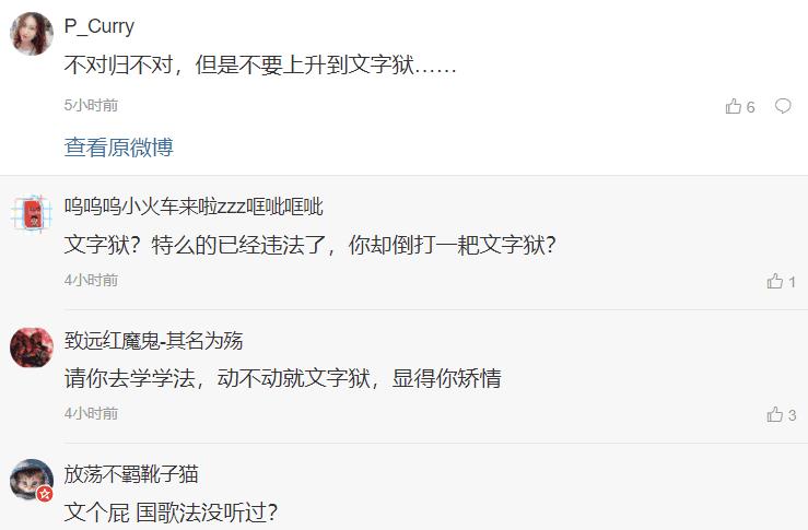 而有一位网友则让大家不要上升到文字狱,都已经违法了,还谈何文字狱?这位网友怕是对文字狱有啥误解吧!