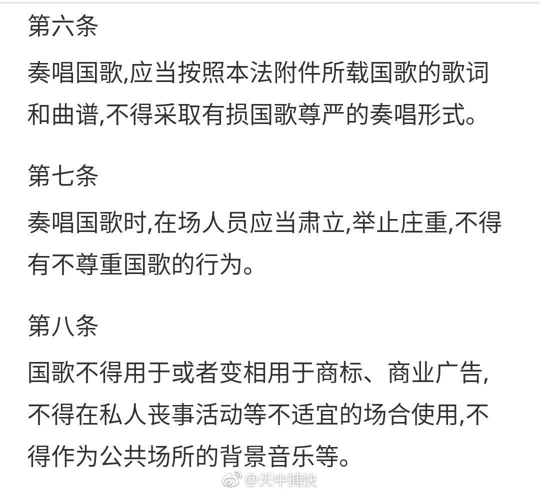 大家应该都耳闻,为了维护国歌的尊严和引起国人对国歌的尊敬和尊重,维护烈士们的形象,国家早在去年的九月份开始颁发《国歌法》,里面的