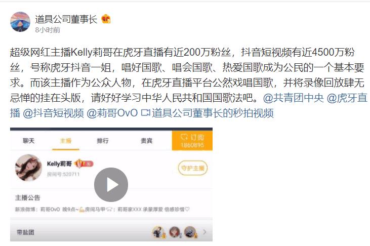 虎牙一姐“莉哥”直播间公然戏唱国歌,网友:发姐冤枉?