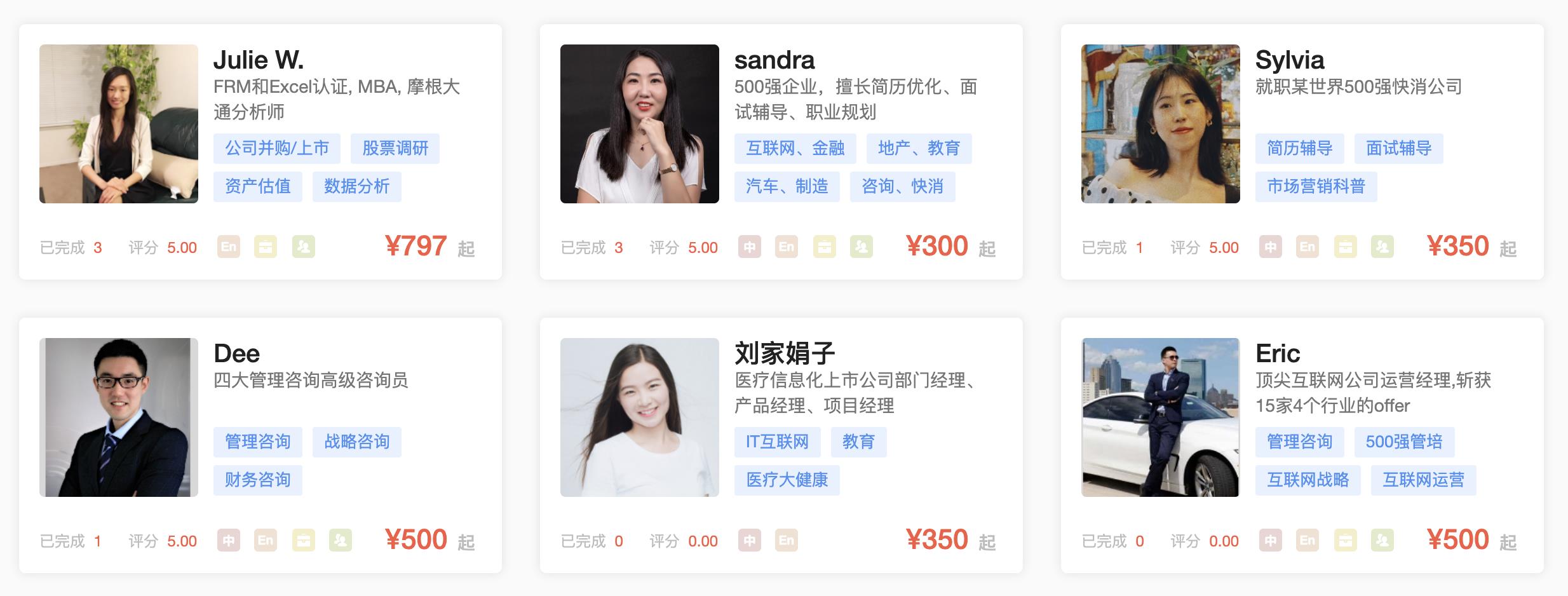 职徒简历这边的修改英文简历国内的老师基本上都是托福100+,雅思7.5分以上的,也不少都是在美工作多年的华人,所以这些老师既懂中文,且熟练英语表达,价格的话每个老师的背景、收费均不相同,所以可以自己根据个人的需求进行选择。