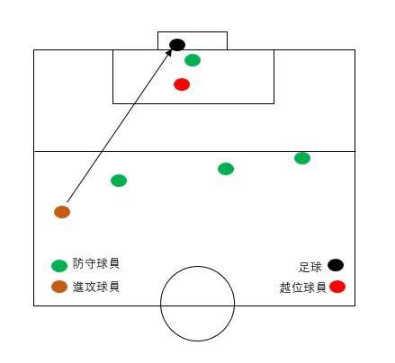 1.进攻方传球瞬间,接球球员比对方除守门员外的任何人都接近球门线,吹罚越位。此时就算接球球员往回跑,接球点在防守球员后面,依旧吹罚越位。