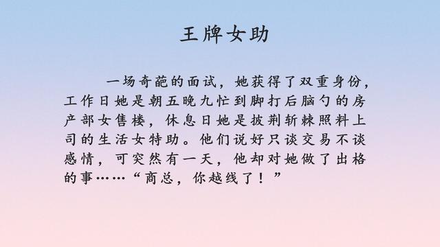 他与她起源于一场让人啼笑皆非的面试,她顺利进入国际售楼部,且成为了他的生活助理,他们本对只谈工作,不谈感情达成共识,她是他万花丛中过,片叶不沾身的挡箭牌,他是她职场上的护身符。
