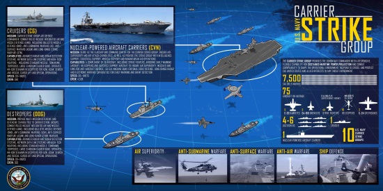 美国的“福特”号航空母舰打击群(CSG)的大致构成是这样的: