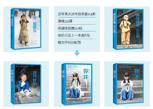 这套图书包括了:《她们最幸福》《乖,摸摸头》《阿弥陀佛么么哒》《好吗 好的》《我不》《你坏》,完整的囊括了大冰的作品,在这本书中,你会看到一个不一样的世界,见到许多有故事的人。