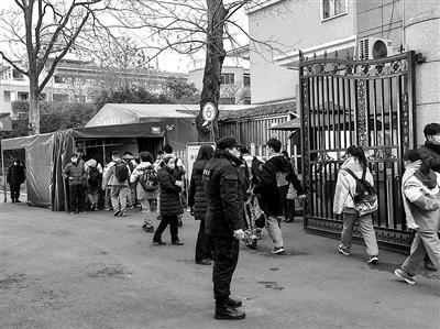 两位妈妈送孩子进校后,聚在一起聊天,说等8点开考再走。“天气预报说今天零下5摄氏度,但是感觉还可以,没有太冷。考场里,应该不会冻手冻脚的。”妈妈们没请假,说等一会儿就去上班。