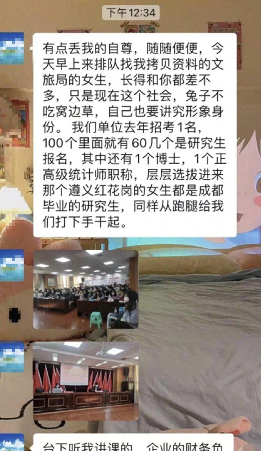 从两人的聊天中就可以看出,这个官员不做正事。他对自己在体制内的工作充满了傲慢和傲慢。他的人生观庸俗不堪,令人不忍直视。