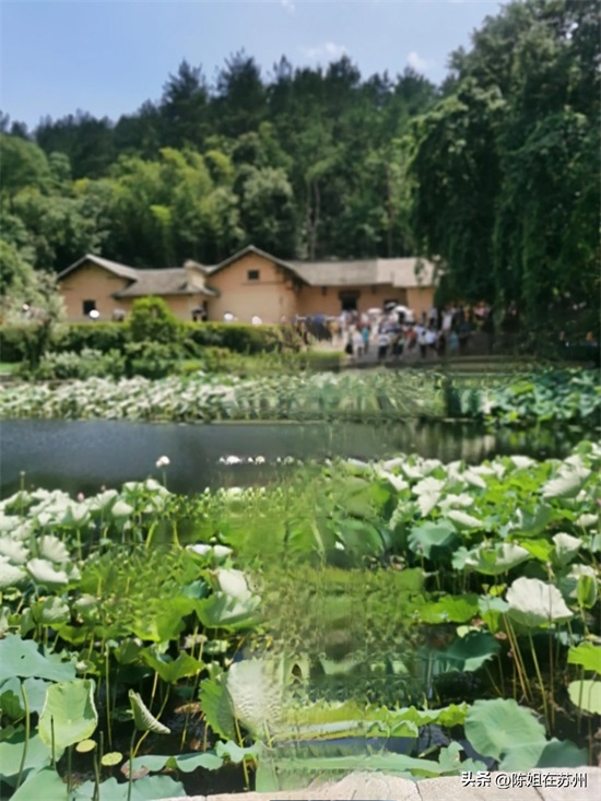这是主要说一下故居,游客最多,排队时间最长的就是故居了。故居参观时身上除了手机、现金、卡之类的东西其余都不能带入内,小背包可以提前免费寄存。故居参观是限流的所以旅游高峰期排队三四个小时也是常有的事。故居出来可拍全景留念,走到前面的荷塘边可拍远全景。然后去故居南岸私塾转转。