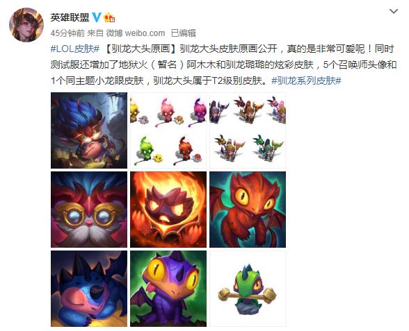 驯龙大头皮肤原画公开,真的是非常可爱呢!同时测试服还增加了地狱火(暂名)阿木木和驯龙璐璐的炫彩皮肤,5个召唤师头像和1个同主题小龙眼皮肤,驯龙大头属于T2级别皮肤。