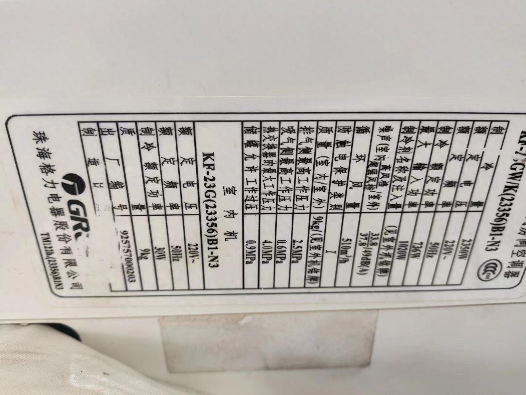 由上图中我们可以看出,这是一台格力1匹的空调,它的实际耗电量就是2139W也就是2.139KW.1小时耗电量就是2.139度电。