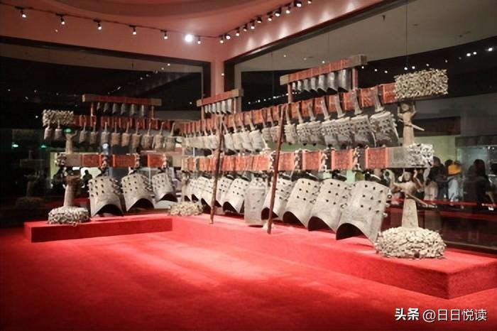 曾侯乙编钟:1978年在湖北随县(今随州市)出土。曾侯乙编钟共65件,分为三层八组:上层3组为钮钟,共19件;中层3组为南钟,共33件;下层为两组大型长枚甫钟,共12件,另有镈1件;中间及下层的也称为甬钟。
