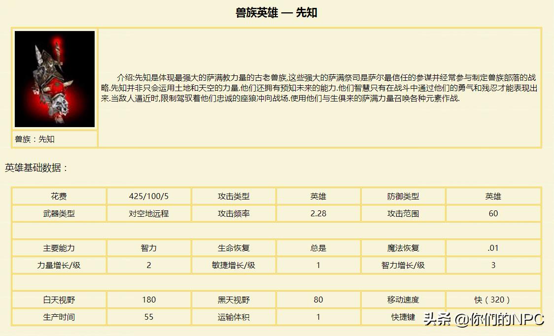 先知,很早版本的首发。但自从暴雪改了剑圣的疾风步技能,兽族就基本是剑圣首发了,先知基本就去看饮水机了,不过1.29之后先知的登场率有了一定的回升。