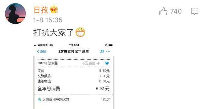 前两天,还有网友哭唧唧的表示,“哎呀,没有支付宝年度账单的2018年就这么过去了,总感觉自己缺了点啥”,这一哭还把支付宝年度账单哭上了微博热搜: