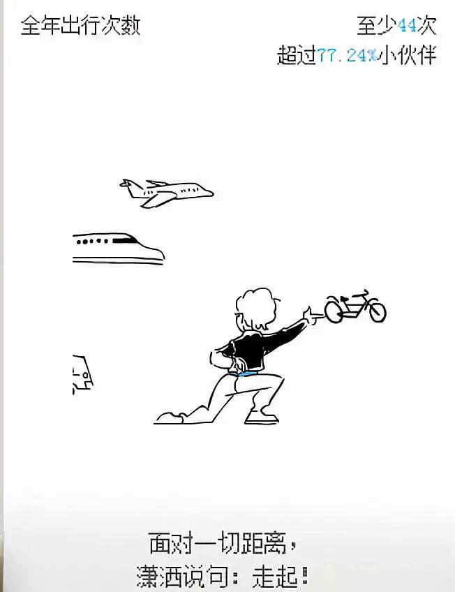 5、交通出行:全年总出行次数包含飞机、火车、打车、共享单车。数据来源如下: