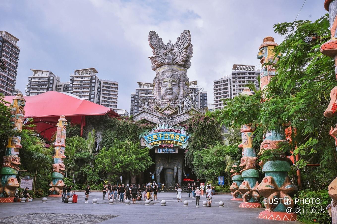 刚进入景区里面,走过四面图腾柱子的图腾大道,就被这个高大的文化造像给震撼到了,从表面上看有点像是柬埔寨的吴哥窟,整体黑人感觉十分具有三亚热带和东南亚相互交融的风情。