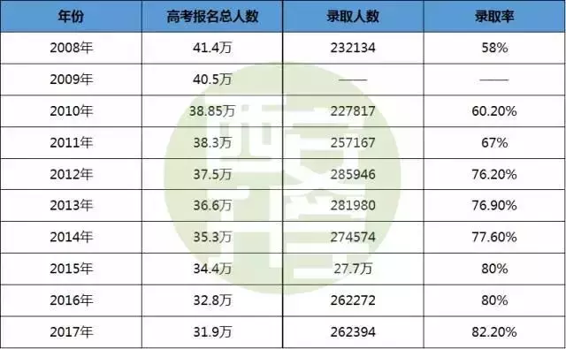 3、2017年陕西省普通高校招生录取率创历年新高,录取率高达82.2%。(原因分析:受最近几年高考的改革变动以及新高考政策的出台等多种因素影响,选择复读考生减少。)