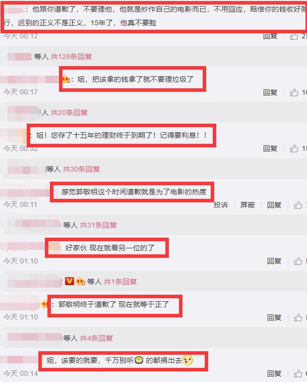 但郭敬明的道歉大家都觉得没有诚意,一个是因为这件事已经过去了14年,一个是郭敬明全文都在避重就轻,没有承认抄袭,只说法院判定了他抄袭,还替她想好要把钱捐出去了,他抄袭的作品也不止这一部,除了抄袭之外,他当年还内涵过庄羽好几次,也影响到了她的工作,所以在郭敬明道歉后,网友都在庄羽微博下让她把钱收下,不要理他。