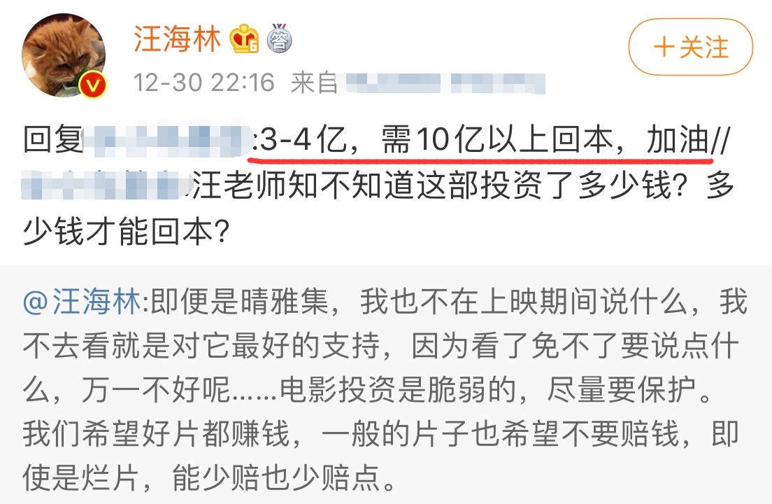 郭敬明在这个节点道歉也有点微妙,有人觉得是因为被100多位影视从业者抵制才出面道歉,也有人觉得他是在为新电影《晴雅集》炒作,因为汪海林之前就爆料过,他这部电影的制作成本在3-4亿左右,票房要到10亿以上才能回本。