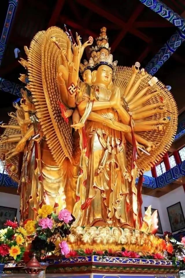 观世音菩萨有三十三种化身,公元前7世纪(春秋时期)观世音传入中国,1300年后唐朝李世民时代,观世音菩萨化身为慈祥女容,并简称观音菩萨。