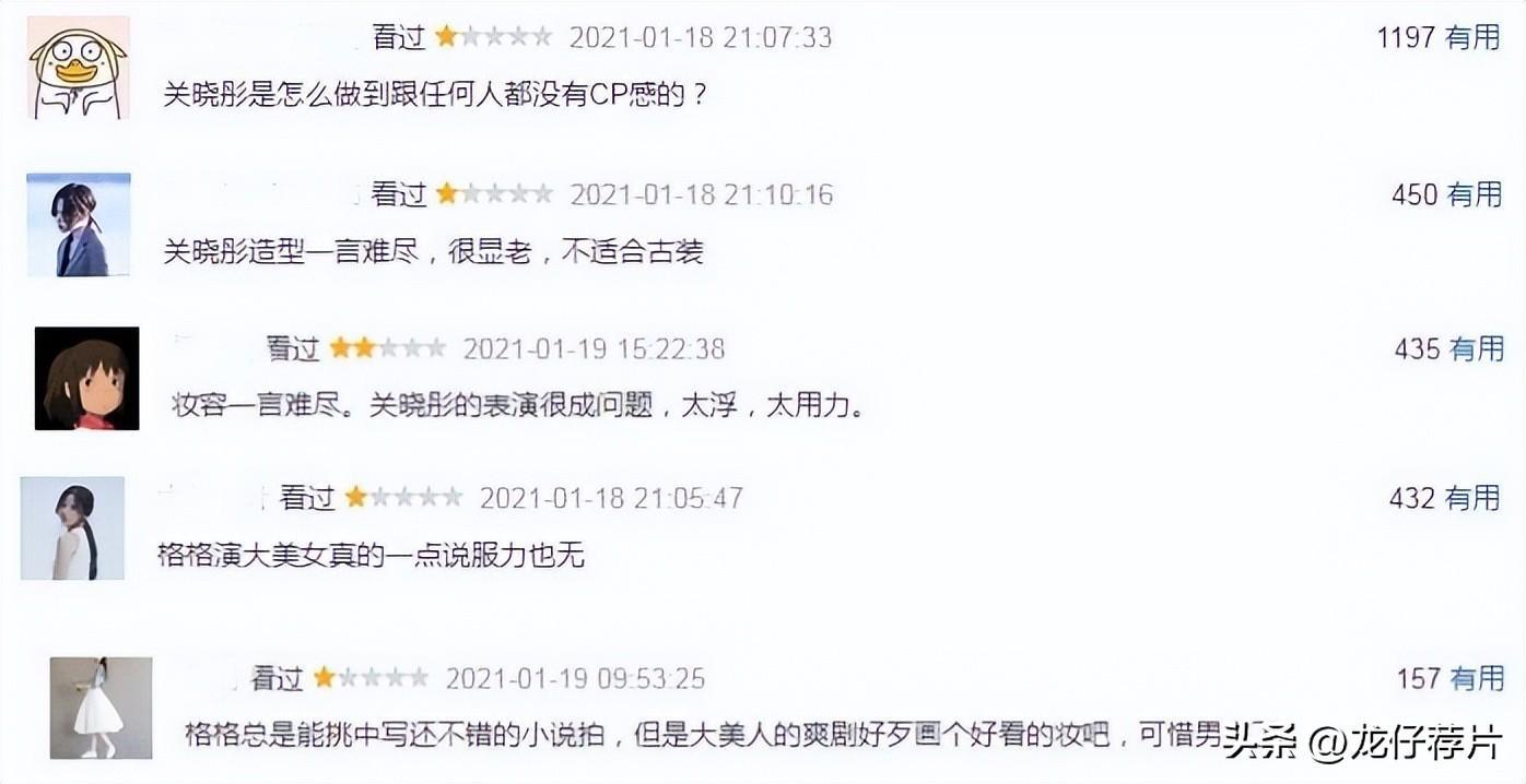 剧中的关晓彤不仅造型花里胡哨,妆容也非常显老,演技也是一如既往地拉胯,无理取闹的人设让观众非常无语。甚至有的观众更是直言:关晓彤是怎么做到和谁都没有CP感的?真是快浪费了侯明昊的盛世美颜。