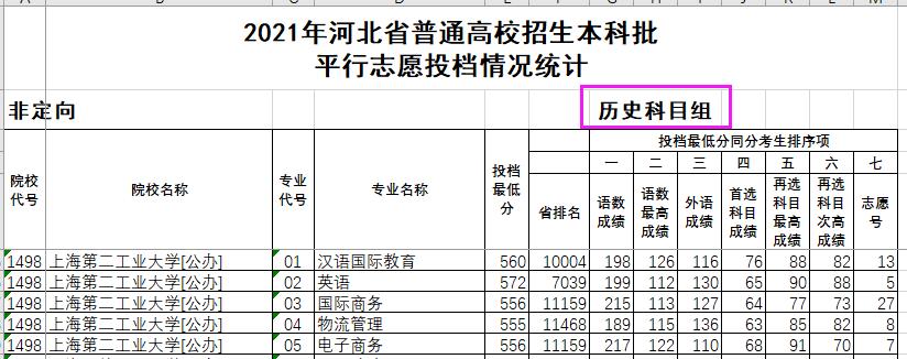 河北省以前文科是二本招生,17-19年位,次范围:16442-10464、16069-12749、15369-12961,20年提档561分,位次12502名。本科合并后上升2867名。文科投放的5个专业都不那么热门,分别是物流管理、汉语国际教育、国际商务、电子商务、英语。