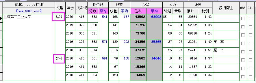 2018-2020年物理和历史组合投档分数、投档位次、录取人数: