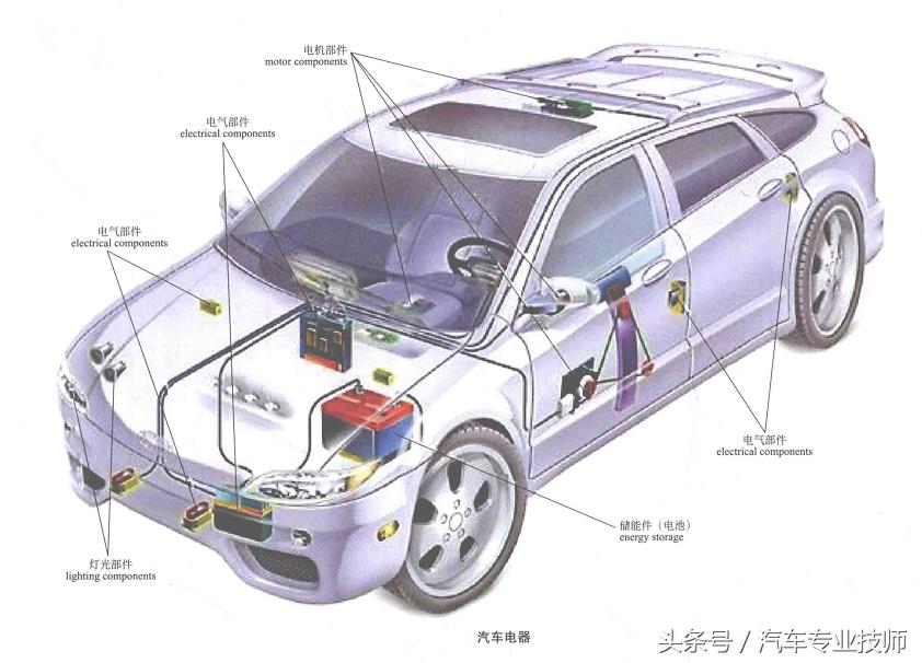4、汽车电器:包括电源、启动系统以及汽车照明灯用电设备,汽油发动机中还包括点火系统。