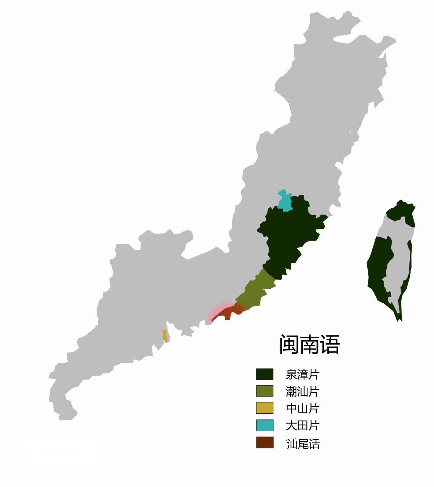 上图为闽语分布地图。海南省和台湾省,说闽语的人非常多。