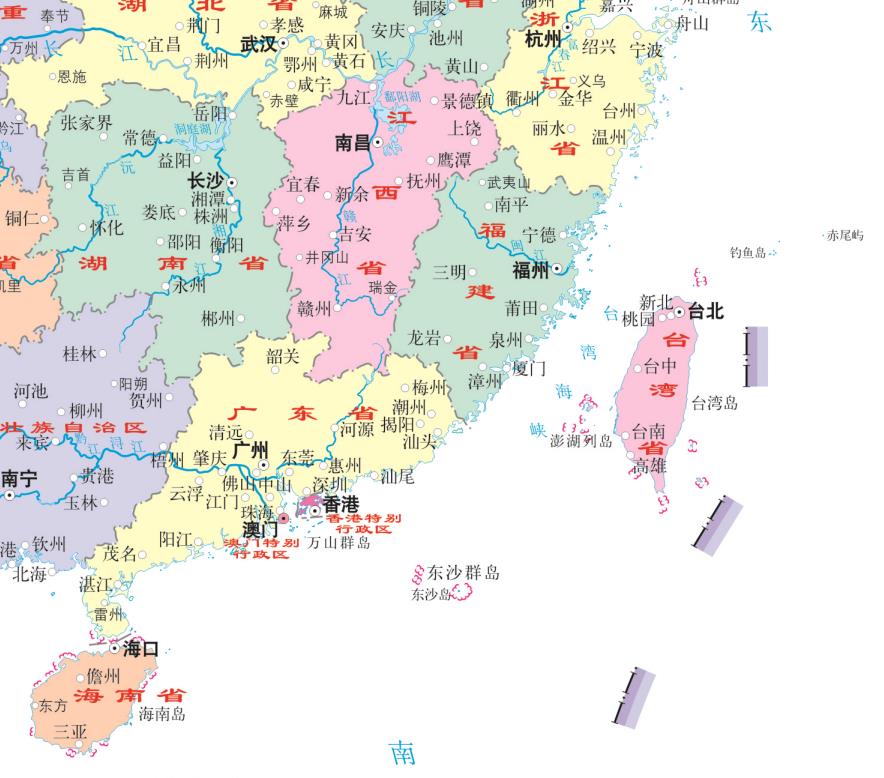 上图中,浙江、福建、台湾、广东、海南,这几个省,都有讲闽语的人。