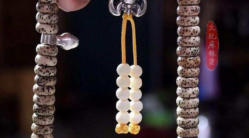 作为菩提老三样的星月菩提,经历了文玩市场的兴衰,在老玩家中的口碑依然如旧,几乎人手必备一条。星月菩提,物如其名,中间的胚芽孔为月孔,四周的小黑点为星孔,星月交映,谓之星月,亦据品相分为月朗星稀等。