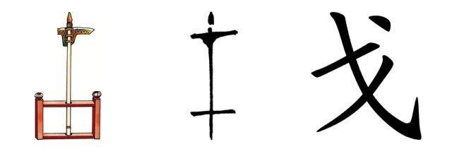 戈上突出的部分叫援,援上下皆是刃,用以横击和钩杀敌人。所以“我”的本义就是一种兵器,但这种兵器的具体形状已经很难说清楚了。后来,“我”由兵器名称引申出了“杀”的意思,《说文解字》中记载:“我,古杀字。”“我”为凶器。
