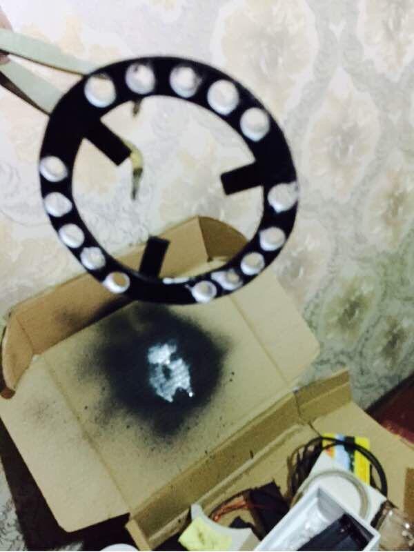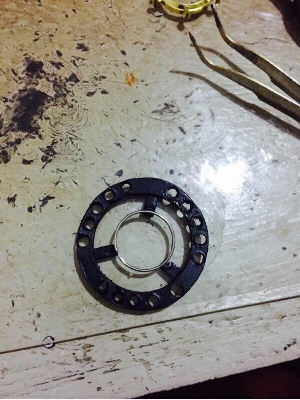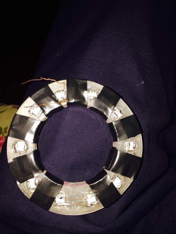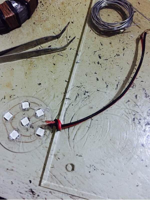 2、先把制作好的亚克力圈开孔,然后焊接LED灯