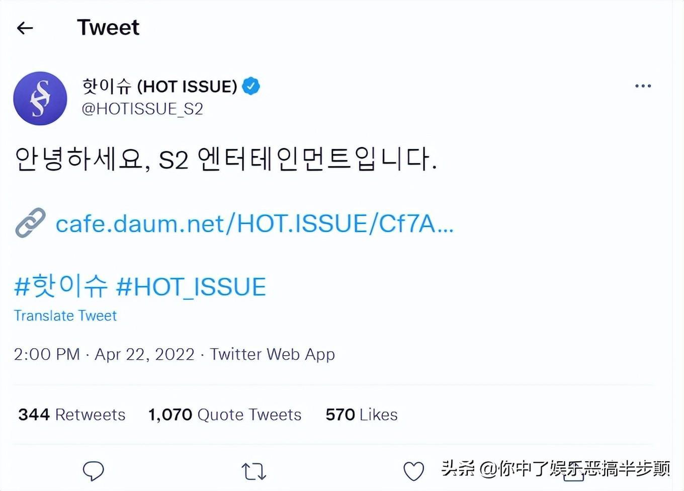 4月22日,韩国娱乐经纪公司S2娱乐通过官方渠道宣布旗下女团HOT ISSUE解散,这离它2021年4月28日正式出道还不足一年的时间。在解散声明里,S2娱乐先对HOT ISSUE的粉丝表达了歉意,并透露经过和成员们长时间的讨论协商,最终决定解散HOT ISSUE,也希望喜欢HOT ISSUE的广大粉丝继续关注和支持成员们未来的发展。