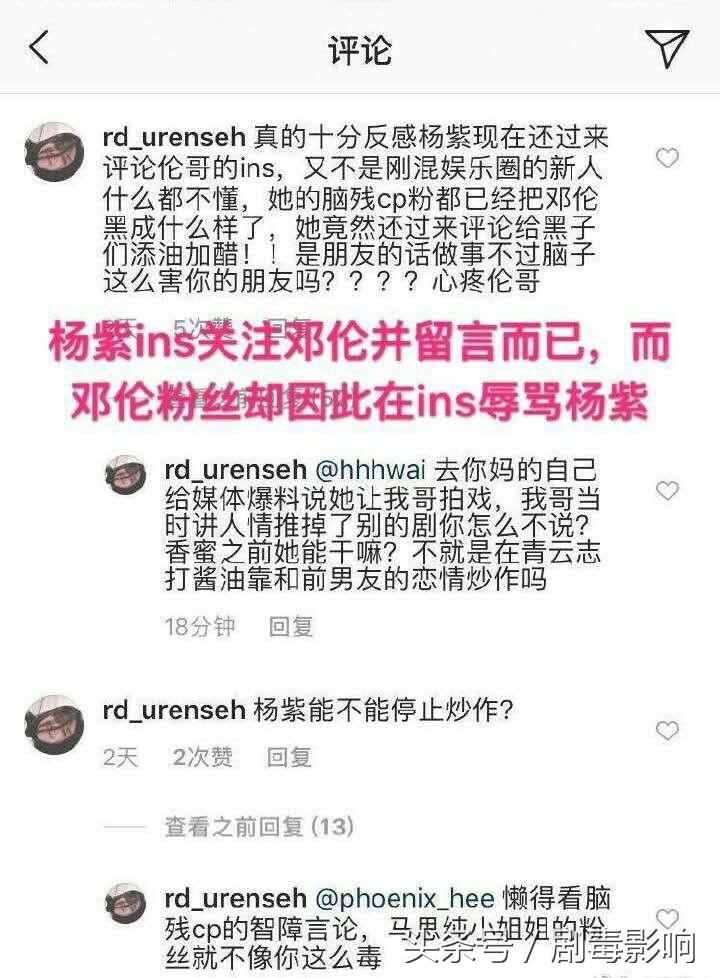 22号,杨紫ins先评论了李现再关注了邓伦并评论:是我的好朋友邓伦么。不带滤镜看,完全就是好朋友间的调侃,然而cp粉却高潮了,纷纷被带节奏爬墙去底下评论:是你的男朋友。邓伦粉丝不高兴了,开始内涵杨紫,黑子看到了又截图发在贴吧里群嘲。