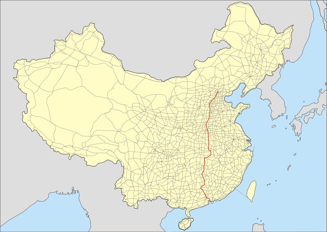 107国道,全长2698公里,是中国第一条横跨南北的国道,也是中国最长的国道之一。它从北京市出发,穿越河北、河南、湖北、湖南、广东等六个省份,最终抵达广东省深圳市罗湖区文锦渡口岸。它像一条巨龙,蜿蜒于华夏大地,连接了许多历史名城,如保定、邯郸、洛阳、开封、武汉、长沙、韶关等;它像一条彩带,缀满了许多风景名胜,如云冈石窟、龙门石窟、少林寺、武当山、岳阳楼、韶山等。它见证了中国的历史变迁,承载了中国的文化传承,也展现了中国的发展成就。
