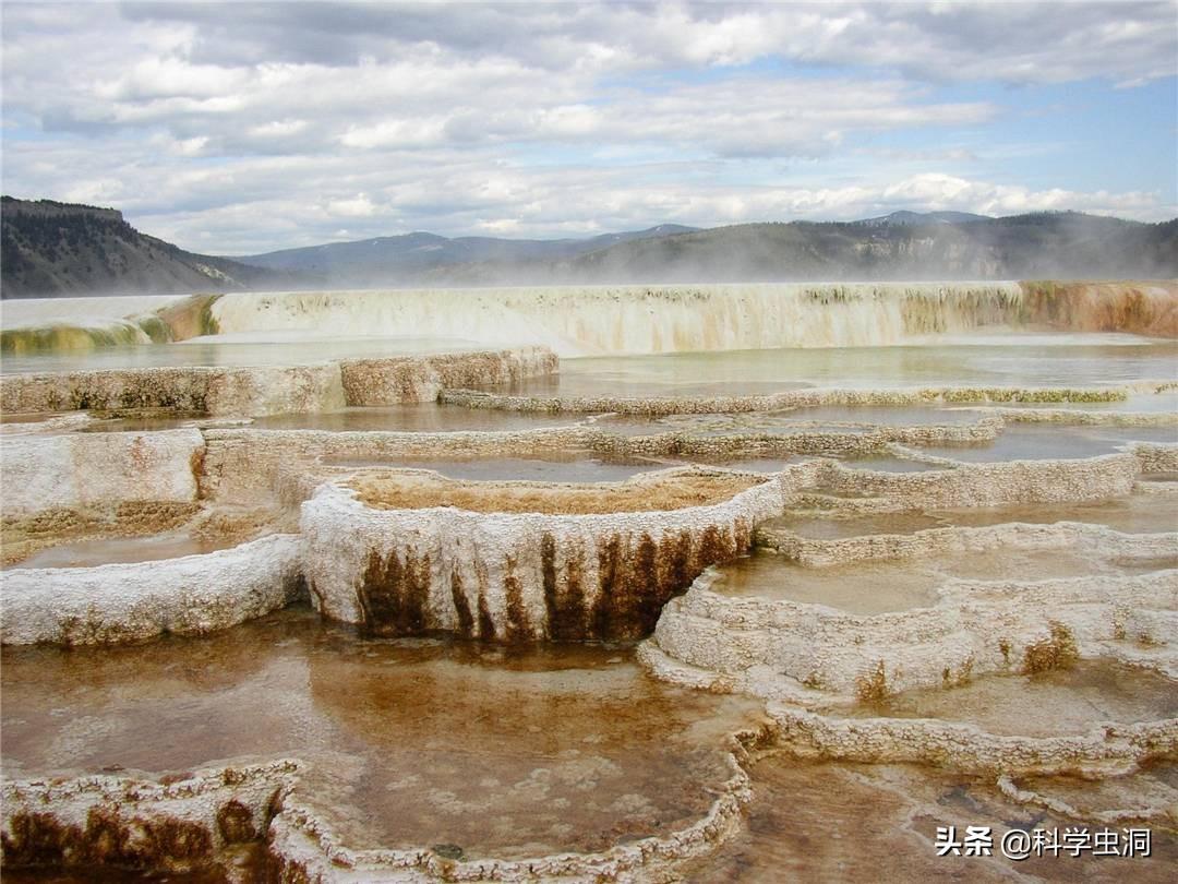 这里风景优美,是名副其实的游览胜地。黄石公园分为五个区,西北的猛犸象温泉区,温泉形成雪白、暗黄的台阶,像是梯田一般,层次丰富。