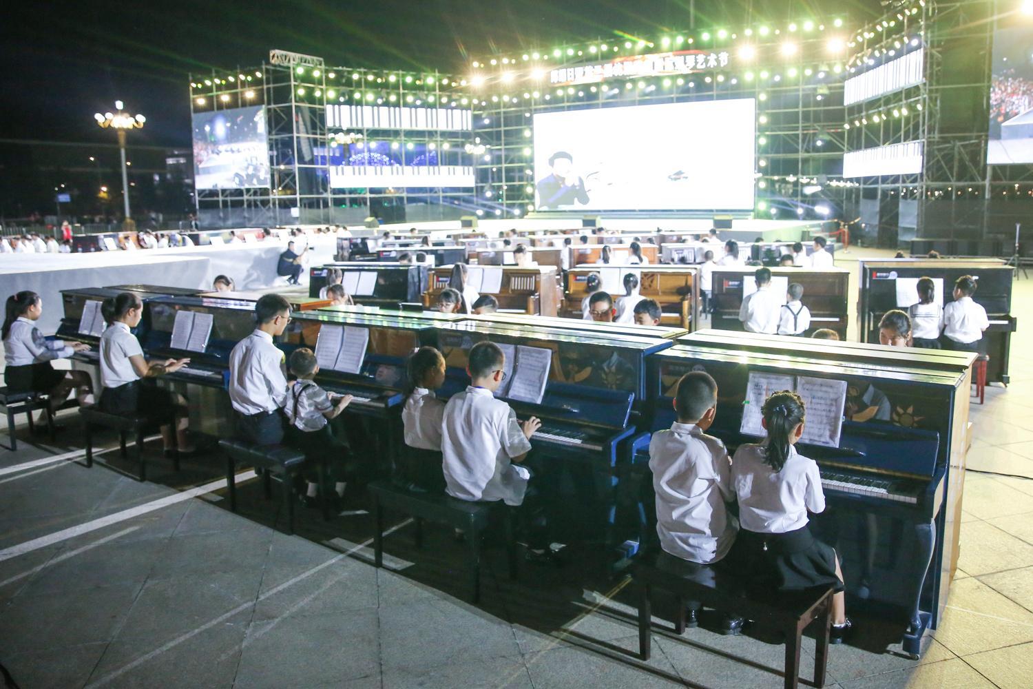 活动当晚,郎朗亲临浑南区中央公园广场,与160名琴童一同弹奏了《拉德斯基进行曲》。据悉,这160名琴童是经过初选、复选后,才得以与郎朗合奏。记者在现场注意到,郎朗似乎放慢弹奏节奏,更好地配合孩子们的表演,还时不时望向孩子们,仿佛在给孩子们加油。