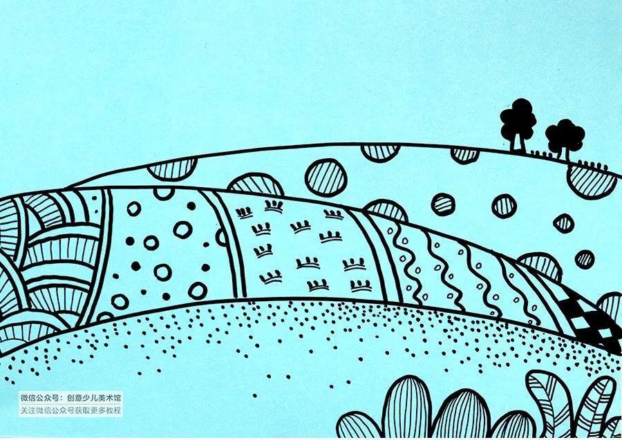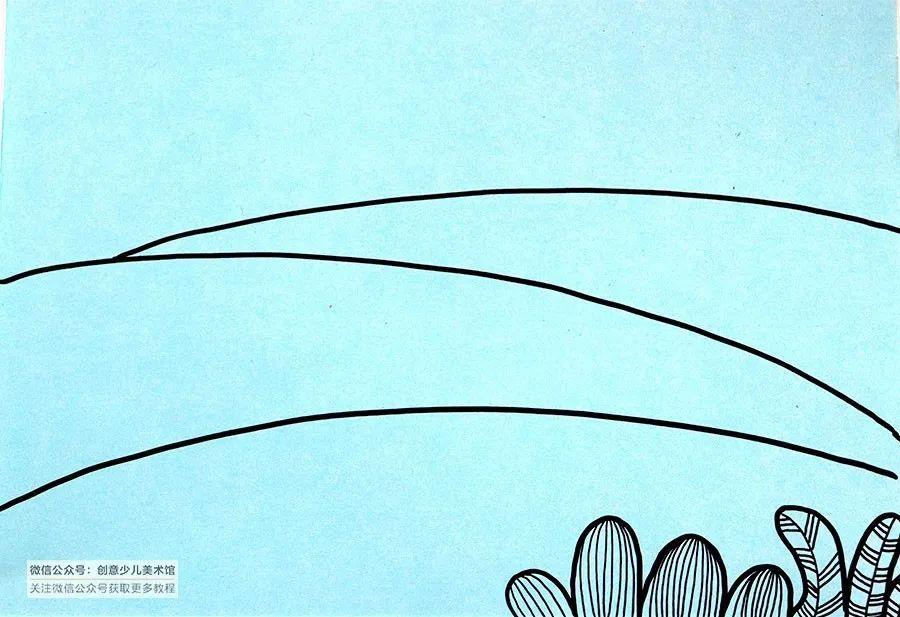 用记号笔在纸上画出近处的草丛和远处的山坡