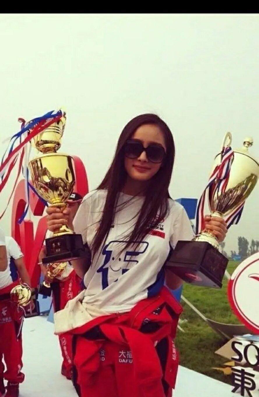 杨幂13年旧照曝光太意外!参加赛车比赛抱大奖,神采飞扬更成焦点